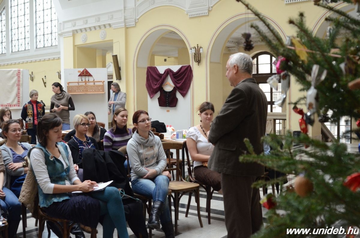 – A néprajzos hallgatók ismerik a naptári ünnepekhez kapcsolódó évszázados hagyományokat, amelyek megőrzésére világszerte egyre nagyobb az igény. Az adventi koszorú gyertyáinak meggyújtása, a karácsonyi fenyő megvásárlása és az ajándékkészítés mind fontos mozzanata az ünnepi készülődésnek, de a legnemesebb az az ajándék, amelyet magunk készítünk szeretteinknek. Ennek jegyében őrzik hallgatóink annak hagyományát is, hogy az ünnepek előtt a régi mesterségek segítségével készítenek karácsonyi meglepetéseket – fogalmazott köszöntőjében Bartha Elek oktatási rektorhelyettes, a tanszék vezetője.