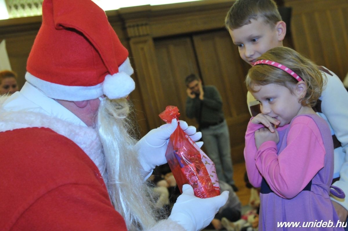 Több mint 300 gyermeknek hozott ajándékot a Télapó, aki az Aulában december 6-án rendezett ünnepségre érkezett az egyetemre.