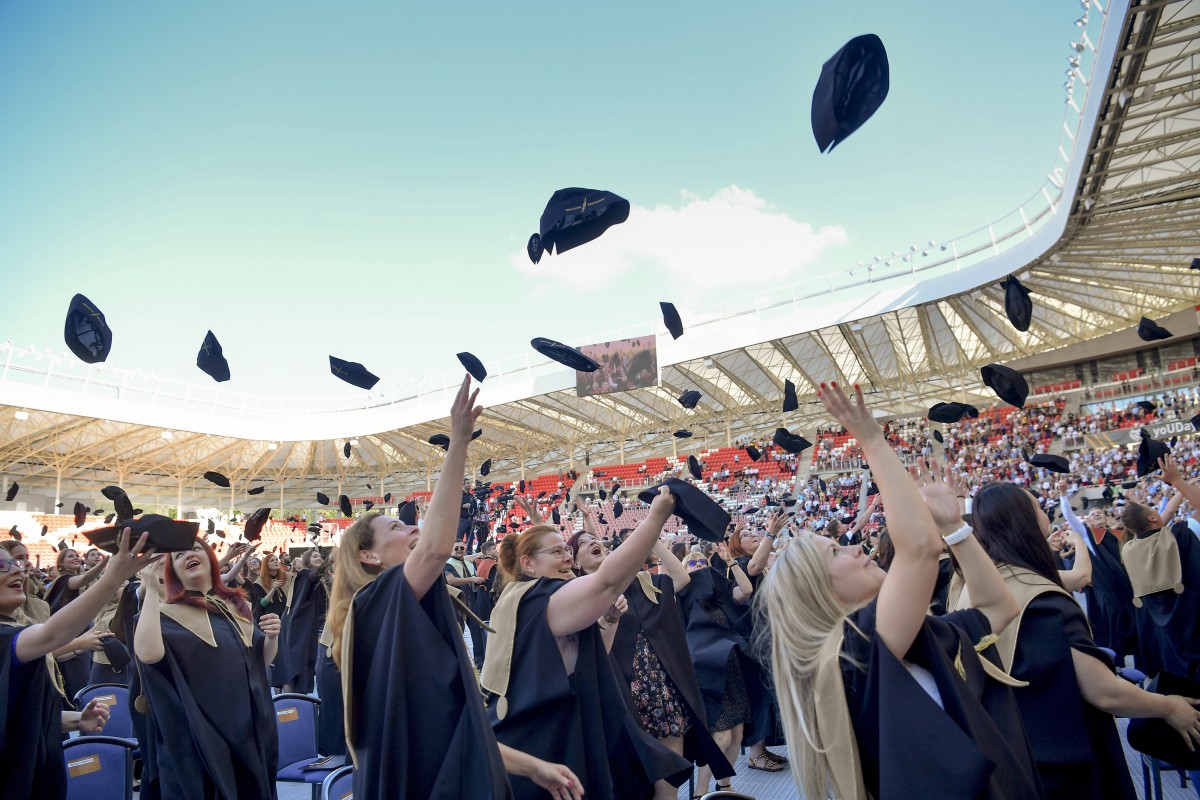 Kép: Debreceni Egyetem diplomaosztója a Nagyerdei Stadionban 2020. nyár