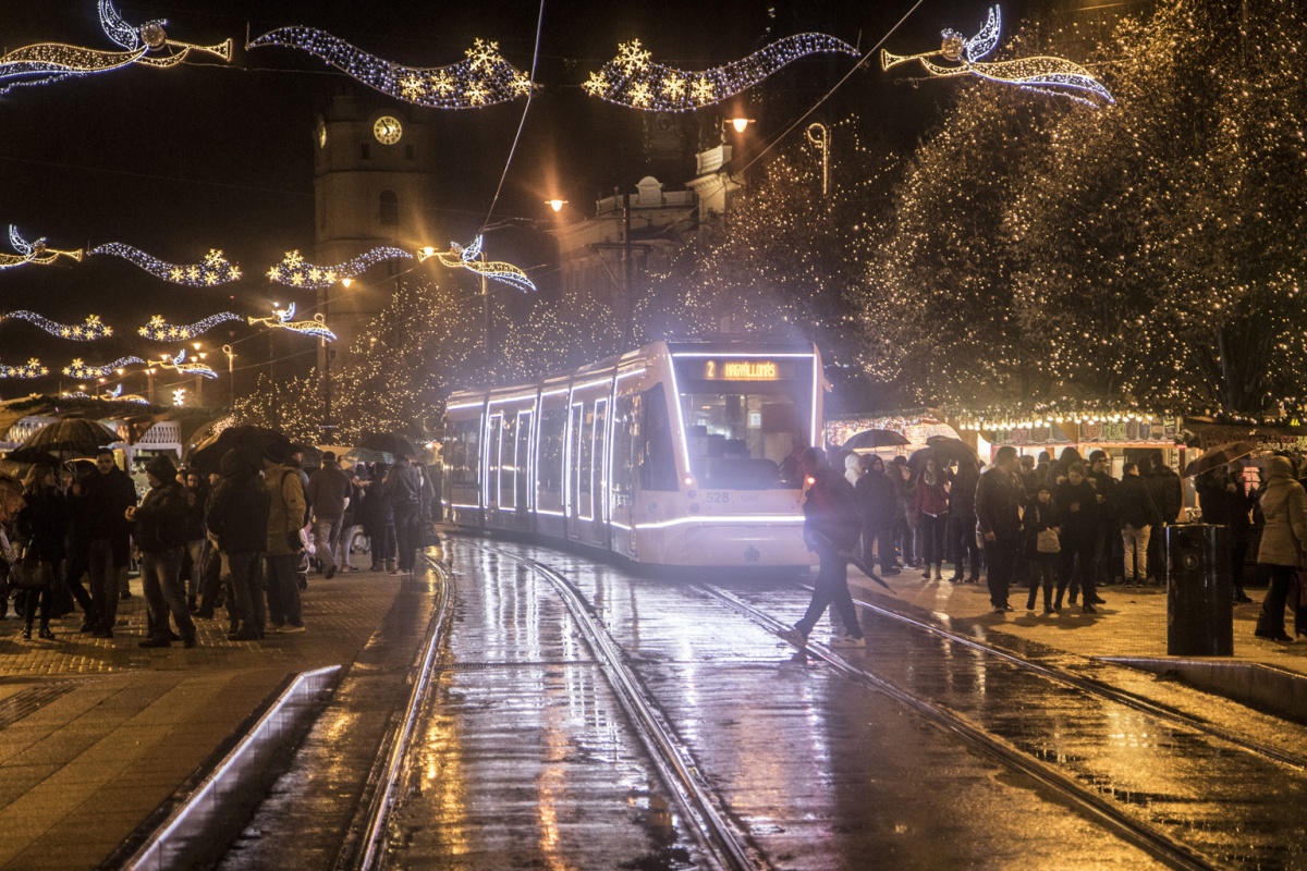 Miután fényárba borult a Kossuth tér, megérkezett a Nagytemplomhoz a két fényvillamos. A DKV speciális járatai mára szintén emblematikus elemei a debreceni ünnepvárásnak és a karácsonyi készülődésnek. A hűvös, esős időjárás ellenére most is sokan nézték meg a karácsonyi lámpagyújtást. A fények után a zenéé volt a főszerep, Adventi találkozások a Nagytemplomban címmel zenés-énekes ajándékműsor vette kezdetét, melynek fellépői között Radics Gigit, a Vox Iuventutis Gyermekkart, Mercs Jánost, a Csokonai Színház kórusát, és a Nagytemplomi Gyülekezet zenekarát köszönthette a közönség.