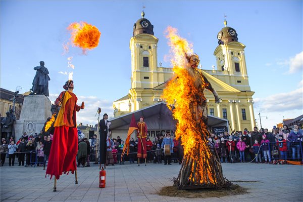Kiszebábégetéssel és farsangi felvonulással köszöntötték a debreceniek a közelgő tavaszt.