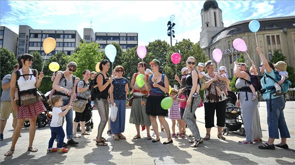 A Születés hete nevű programsorozat nyitányaként tartott flashmob (villámcsődület) a debreceni Kossuth téren 2017. június 12-én. Fotók: Czeglédi Zsolt/ MTI sweee