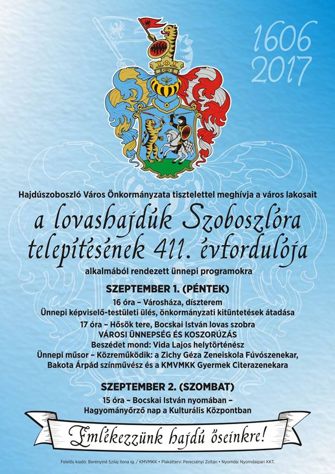 Város napi ünnepség lesz Hajdúszoboszlón Helyi hírek augusztus 31, 2017Szabolcs SzilágyiSzóljon hozzá a Város napi ünnepség lesz Hajdúszoboszlón bejegyzéshez Szeptember 1-jén, pénteken ünneplik Hajdúszoboszlón a Város napját.Lesz koszorúzás és fúvószenekar is.
