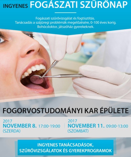 november 4, 2017Szabolcs SzilágyiSzóljon hozzá a Ingyenes szűrőnap lesz a Fogorvostudományi Karon bejegyzéshez