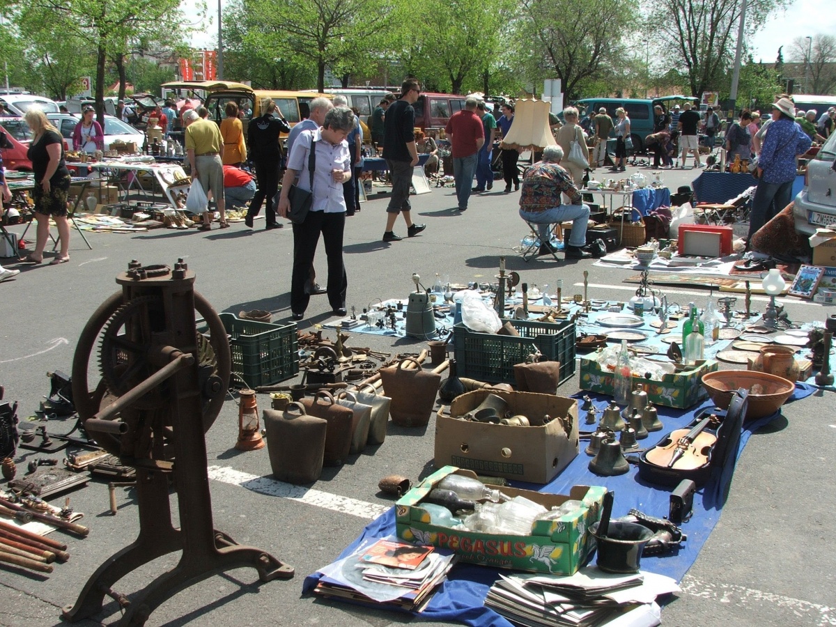 A megszokott pénzérmék, medálok, fegyverek és bútorok mellett antikváriusok is kínálják nem is oly régi könyveiket. Porcelán étkészletet, festményeket és családi ezüstöt is bőven lehet itt találni. A kínálat változatos, sokszínű. Új áruknak a régiségvásár nem biztosít helyet. Nyitva tartás: 15 óráig.