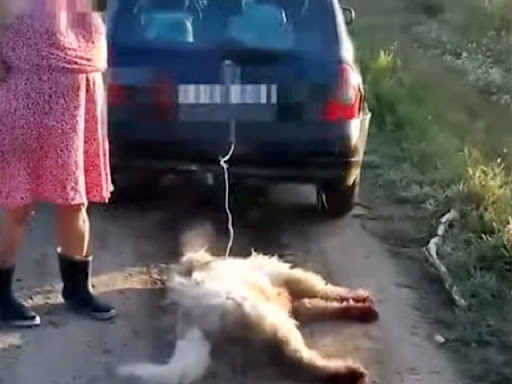 Az asszony az eb nyakörvére egy 120 centiméteres bálamadzagot kötött, amelynek másik végét a gépkocsi vonóhorgához rögzítette, majd a járművel a kutyát 2,7 kilométeren át, 20-30 km/h sebességgel vontatva hazaindult.