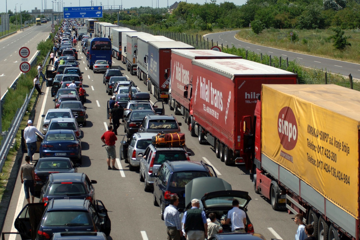 Röszkénél, Szerbia felé és a belépőoldalon egyaránt háromórás a sor a teherforgalomban. A személyforgalomban a kilépő oldalon egy óra a várakozási idő.