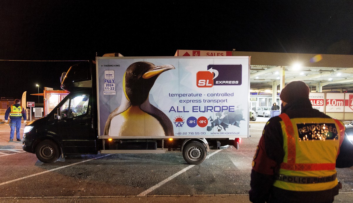 A koronavírus elleni oltóanyagot, a Pfizer-BioNTech vakcinát szállító kisteherautó a hegyeshalmi határátkelőhelyen lépett át 2020. december 26-án.