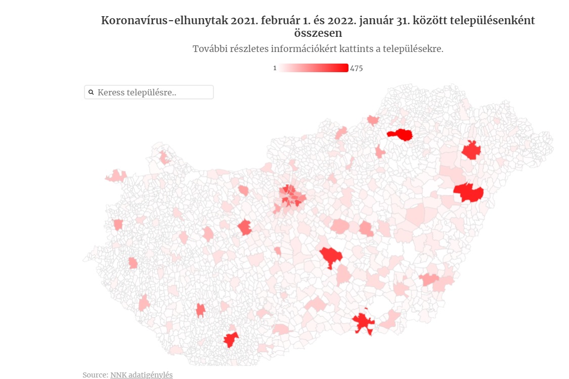 A 90 napos várakozási időnél egy nappal sem hamarabb, de végül kiadta a Nemzeti Népegészségügyi Központ (NNK) kiadta az Átlátszónak a halálozás időpontjában koronavírus fertőzöttként nyilvántartottak településszintű adatait 2021. február 1. és 2022. január 31. közöttre vonatkozólag.