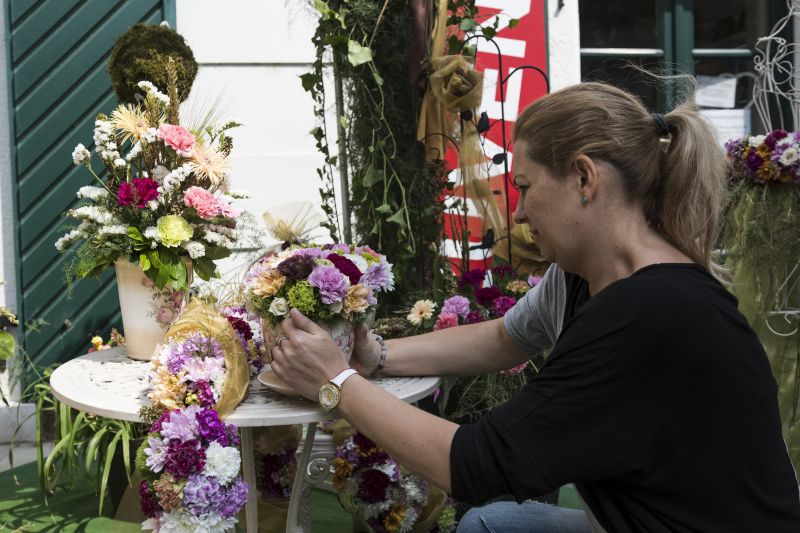 Fotó: Virágokkal díszített installációt készít egy virágkötő a Pünkösdi Virágálom elnevezésű rendezvényre a székesfehérvári Városháza téren 2018. május 18-án. A pünkösdi eseményre a város virágkötői látványos kompozíciókkal díszítik fel a középületek kapuit és az emlékműveket. MTI Fotó: Mónus Márton