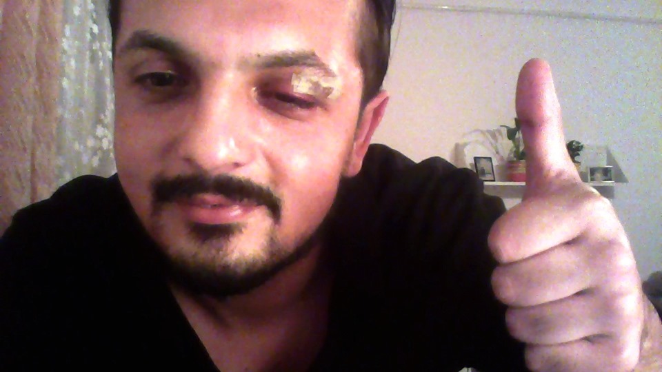 Én kezemmel próbáltam védeni a mellettem remegő, síró terhes feleségemet, majd a pillanat törtrésze alatt belefejelt a szemem fölé.