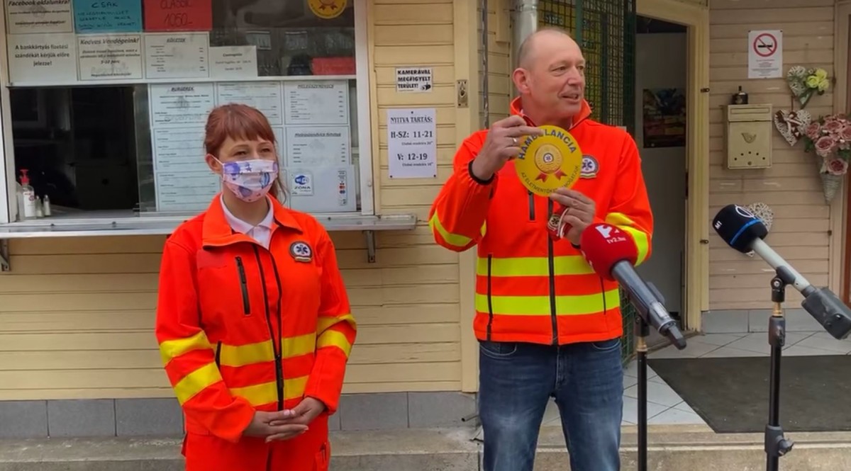Az első “Hambulancia” matricát szerdán arra a vendéglátóegységre helyezték ki, ahol húsvétkor lefotózták a mentőket. A hely tulajdonosa, Jóné Erika az M1-nek nyilatkozva azt mondta: a mentők járvány idején, előtt és után is emberéleteket mentenek, ezért csak “szeretettel és jóérzéssel lehet rájuk gondolni”.