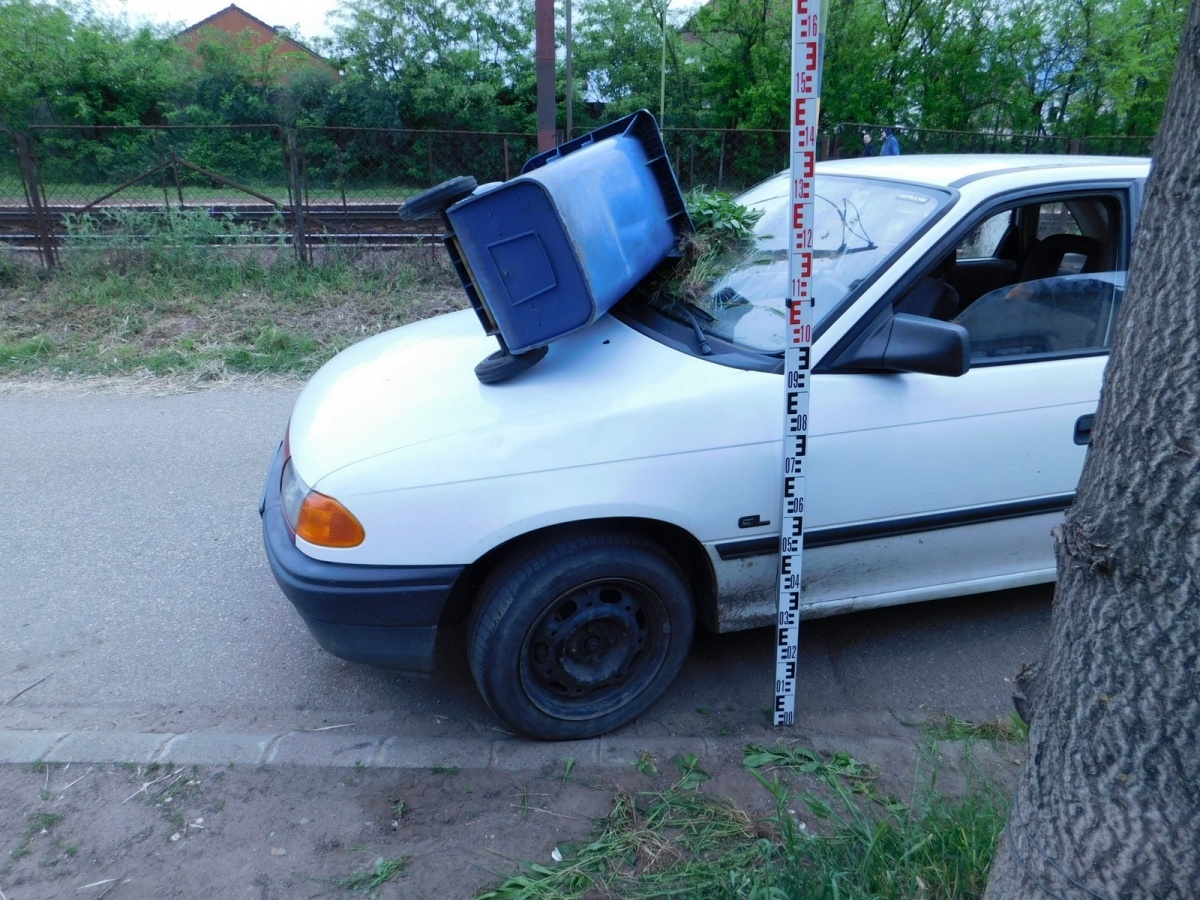 A rendőrségre telefonon tett bejelentést egy férfi 2017. május 8-án 16 óra körül arról, hogy Debrecenben összeveszett a szomszédjával, aki a gépkocsijának dobott egy kukát. A rendőrök a helyszínre mentek és adatgyűjtést követően a Debreceni Rendőrkapitányságra előállították M. Imrét, akit a nyomozók kihallgattak. A 63 éves férfi a megalapozott gyanú szerint miközben veszekedett a szomszédjával, megfogta a saját műanyag szeméttárolóját és a sértett személygépkocsijának dobta, amelynek szélvédője ennek következtében betört.
