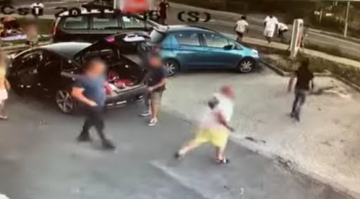 A sajtótájékoztatón levetítették a benzinkút térfigyelő kameráinak felvételeit. Ezeken az is látható, hogy egy autó nagy sebességgel tolatva elüt egy férfit, aki a jármű alá kerül, a töltőállomás vendégei pedig riadtan ugranak el a botokkal és késekkel támadó férfiak elől.