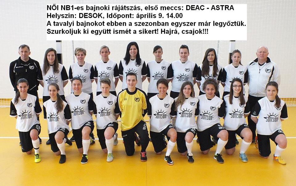 A DEAC NB-es női futsalosai pedig a rájátszásra készülnek gőzerővel. A legjobb négy közé kerülésért az Astra ellen játszanak április 9-én 14 órától szintén hazai pályán.