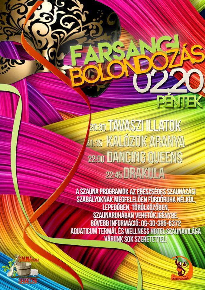 Pénteken Farsangi szauna esttel várja vendégeit az Aquaticum Szaunavilág!