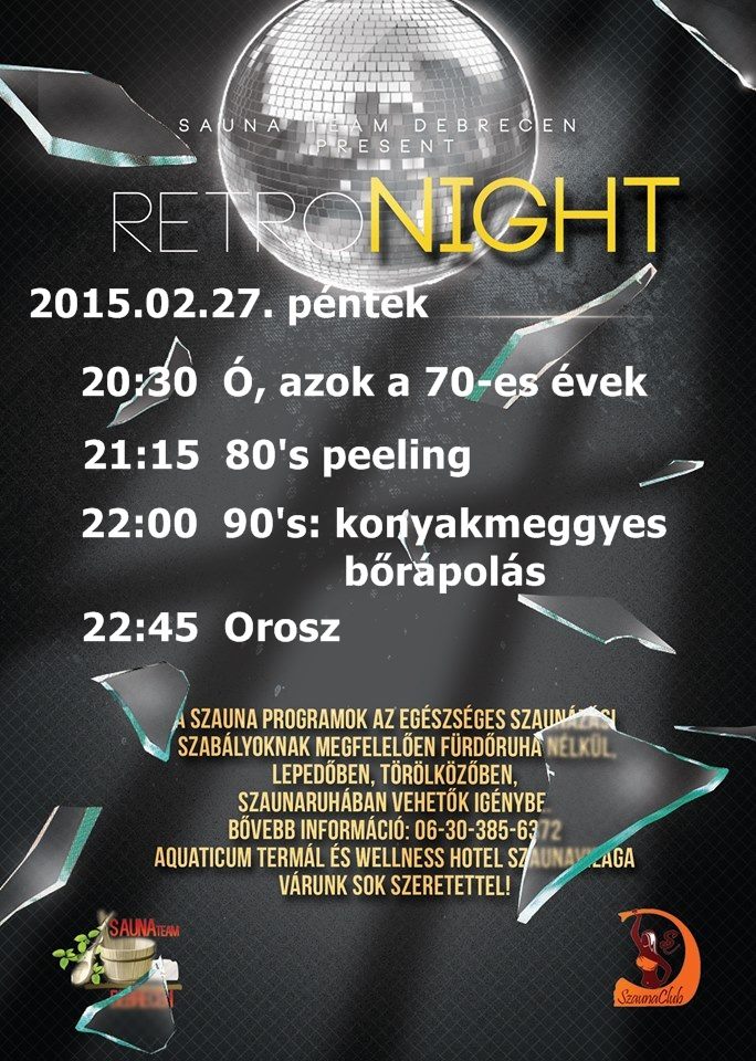 Várunk szeretettel ma este mindenkit egy igazán frissítő és jó hangulatú szaunaestre, ahol a kényeztető bőrápolások mellett felcsendülnek a 70-es, 80-as és 90-es évek zenéi.
