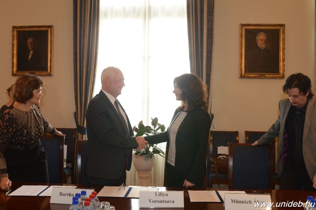 A megállapodást ma írta alá Bartha Elek a debreceni és Liliya Vladimirovna Vorontsova a kazanyi egyetem rektorhelyettese.