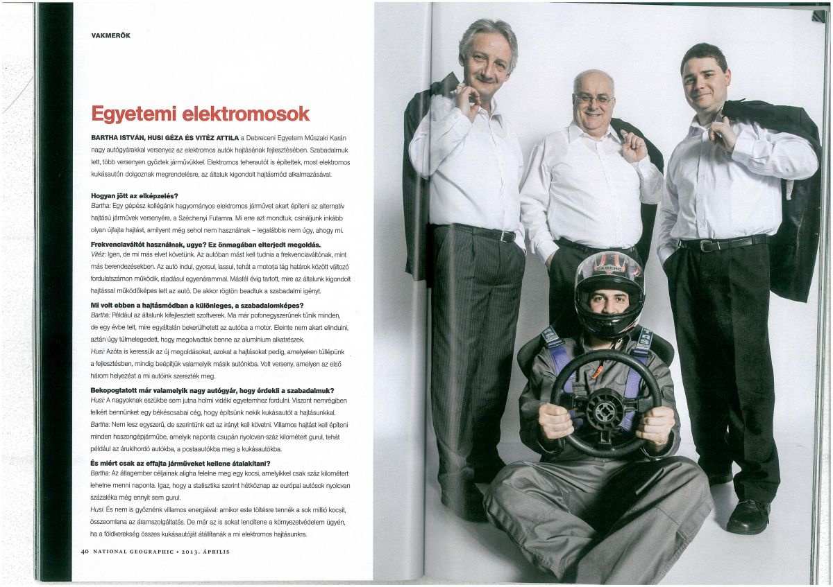 A Debreceni Egyetem Műszaki Karának Villamosmérnöki és Mechatronikai Tanszéke élen jár az elektromos hajtású járművek fejlesztésében, évek óta kiemelkedő sikerrel szerepelnek a hazai, alternatív hajtású autók számára rendezett versenyeken. A National Geographic magazin 2013. áprilisi számában mutatta be a debreceni csodaautókat és feltalálóikat – a lap munkatársai beválasztották a tanszéket a National Geographic által támogatandó tíz magyar tudományos személyiség közé.