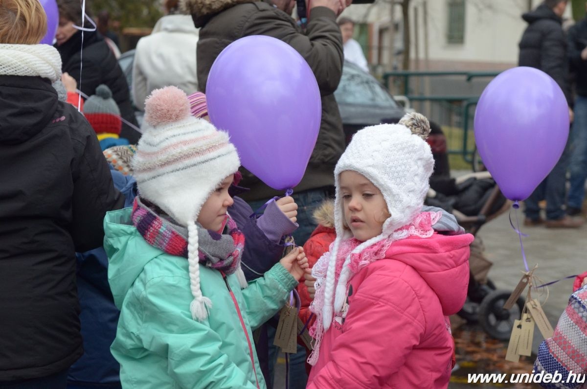 „Gyógyulj meg hamar! Mielőbb menj haza! Egyél sok gyümölcsöt!” – ilyen és ehhez hasonló jókívánságokat diktált, majd kötött lila lufikra a Debreceni Egyetem száz óvodása, akik ezzel a kezdeményezessél próbálták jó kedvre deríteni a beteg gyermekeket.