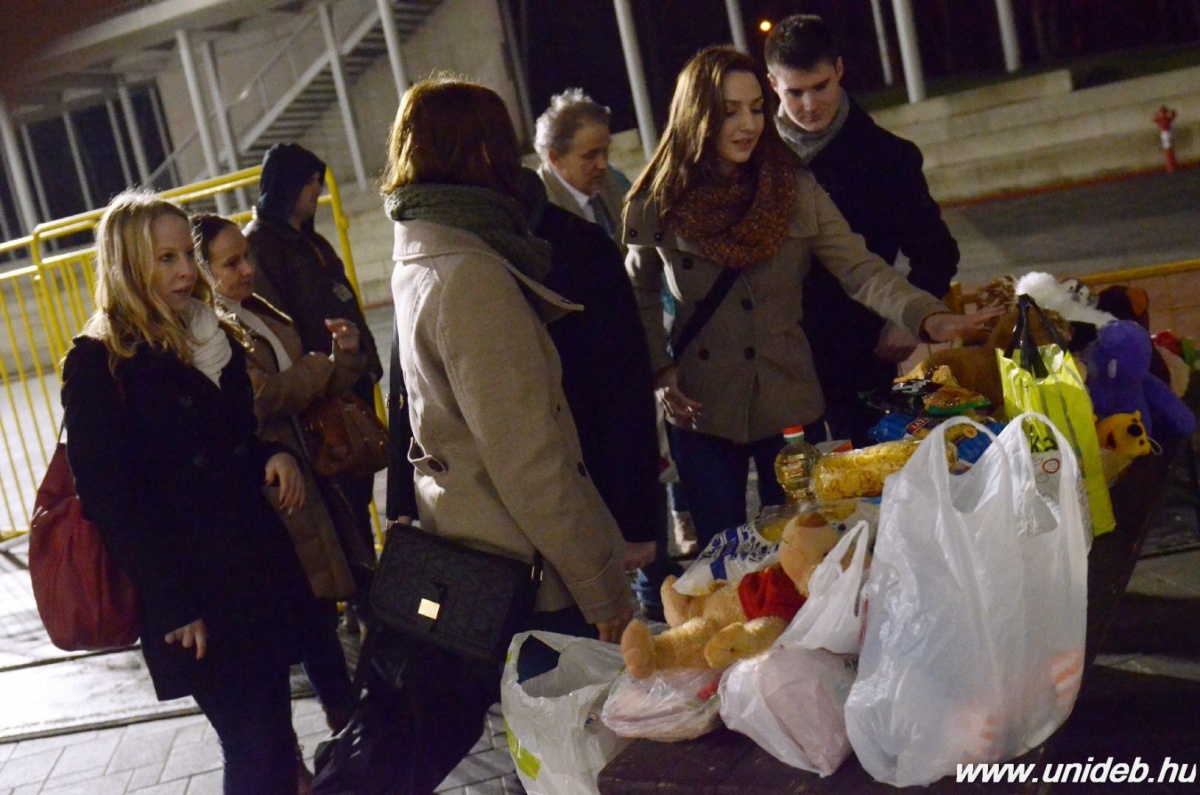 – Több mint 450 hallgató és oktató vett részt a rendezvényünkön, de ennél jóval többen segítettek, hiszen sokan nem is húztak a lábukra korcsolyát, csak elhozták az adományukat és továbbálltak. Összesen egy kisteherautónyi játék és élelmiszer gyűlt össze, amit az átmeneti otthonokban élő családoknak szánunk – tájékoztatottPöszmet Tibor, a Sportiroda vezetője.