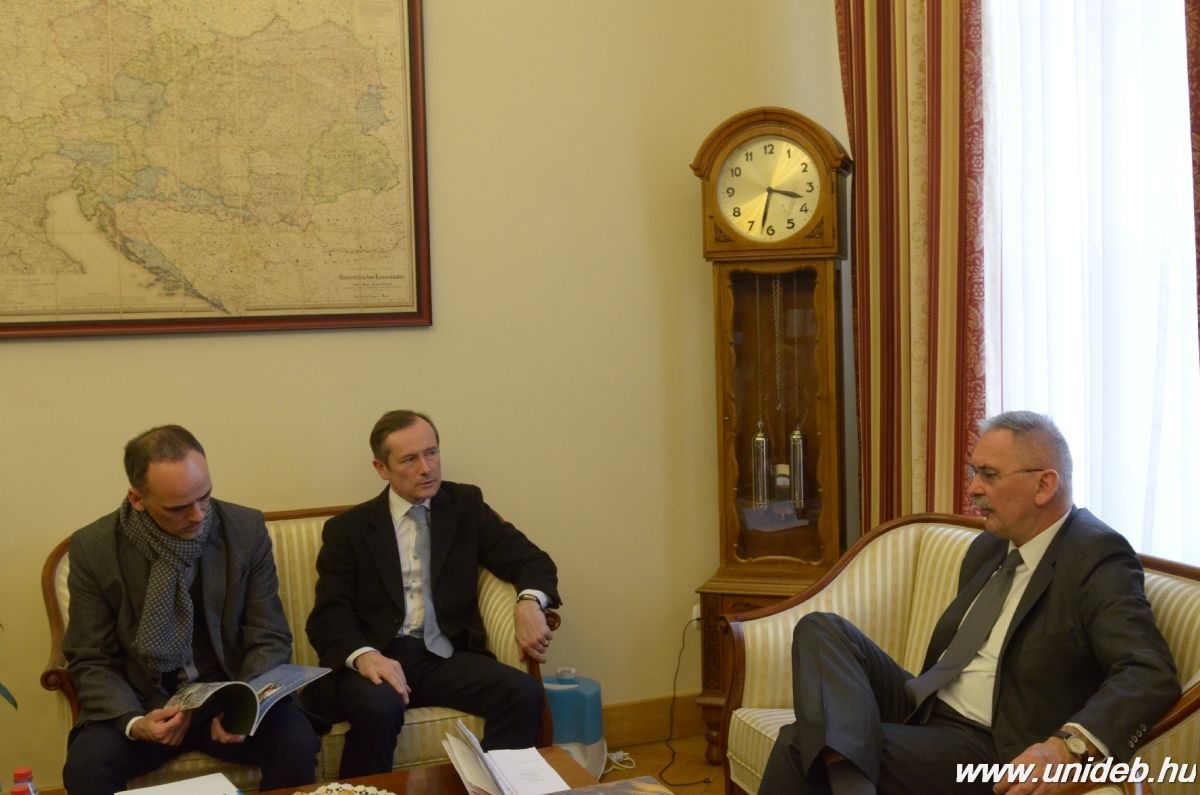 – Főként az orvostudományban és egészségiparban látunk esélyt a közös munkára. Ezeken a területeken az akkreditált klaszterek révén jól strukturált ágazati kapcsolatai vannak a Debreceni Egyetemnek, míg Franciaországban ugyancsak klaszteralapú a gazdaságfejlesztés. A nagykövettel egyetértettünk benne, hogy a diplomáciai csatornák támogatásával még hatékonyabb lehet a közös munka – tájékoztatott Szilvássy Zoltán rektor.