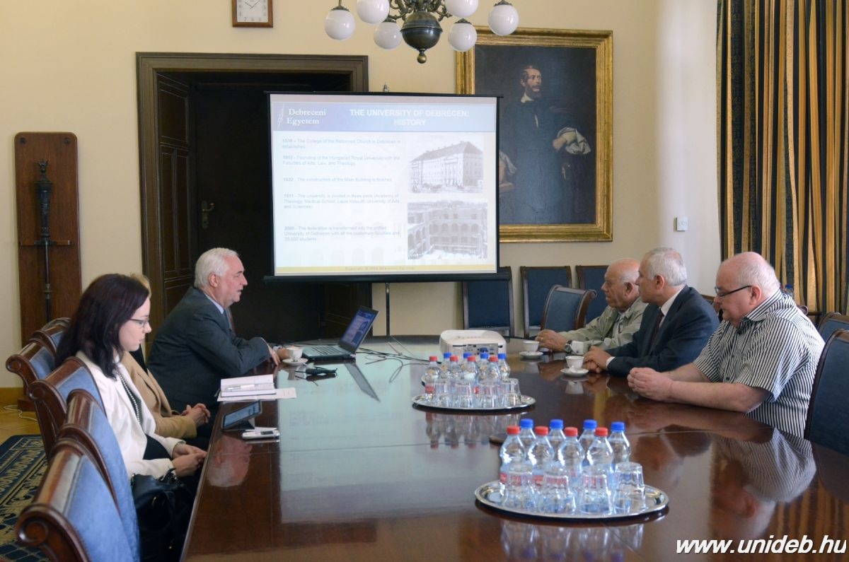 Bartha Elek rektorhelyettes nemcsak a Debreceni Egyetemet mutatta be a vendégeknek, hanem tájékoztatta őket azokról az ösztöndíj-lehetőségekről is, melyeknek köszönhetően a jövőben a szuezi intézményből is érkezhetnek Debrecenbe hallgatók, sőt a magyar hallgatók is részt vehetnének Egyiptomban részképzésben, akár szakmai gyakorlatot is teljesíthetnének a Nílus országában.