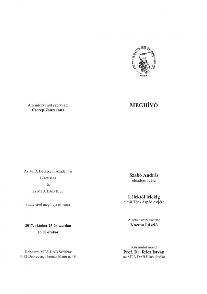 október 19, 2017október 19, 2017Szabolcs SzilágyiSzóljon hozzá a Tóth Árpád-est lesz a DAB székházban bejegyzéshez