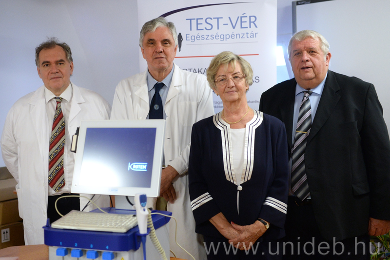 A véralvadási paraméterek azonnali vizsgálatát teszi lehetővé az a modern diagnosztikai eszköz, melyet a Debreceni Egyetem Kardiológia és Szívsebészeti Klinikájának ajánlott fel a Test-Vér Egészségpénztár. A 14 millió forint értékű készülék korlátlan használatáról szóló megállapodást a felek október 19-én írták alá a Klinikai Központban.