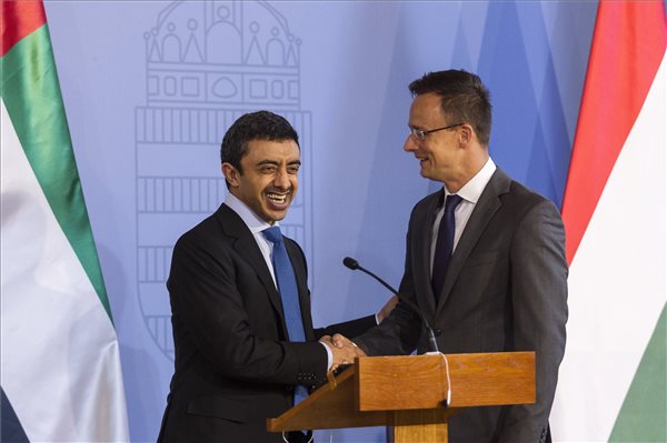 Szijjártó Péter sajtótájékoztatóján kifejtette: az Egyesült Arab Emírségek az arab világ második legjelentősebb gazdasága és az Öböl-térség egyik vezető országa. A múlt heti NATO-csúcson is megállapították, hogy délről is komoly kihívások érik a szövetséget, márpedig az Egyesült Arab Emírségek kulcsszerepet játszik a régió stabilitásának biztosításában, ezért lényeges az együttműködés az országgal – mutatott rá.
