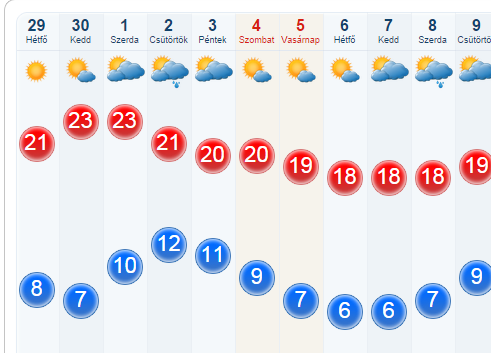 Beköszöntött a vénasszonyok nyara a Hajdúságban is. Debrecen környékén egész héten napos, száraz idő várható, elszórt záporokra csak csütörtöktől számíthatunk. A hőmérséklet csúcsértéke a délutáni órákban eléri a 21-23 fokot.