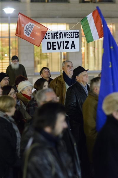 Résztvevők a Szabad oktatást! és az Egymillióan az internetadó ellen Facebook-csoportok demonstrációján, amelyet Nincs hova hátrálnunk! címmel tartanak Debrecenben, a Baltazár Dezső téren 2014. december 16-án. MTI, fotó: Czeglédi Zsolt