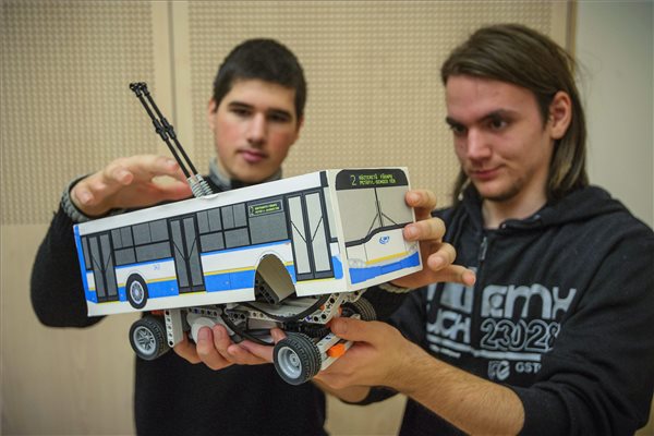 Trolibuszrobotot szerelnek össze a Mechwart András Gépipari és Informatikai Szakközépiskola diákjai a debreceni Kölcsey Központban 2015. november 18-án. A városban harminc éve indult a trolibusz-közlekedés. MTI Fotó: Czeglédi Zsolt