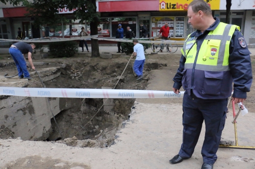 A rendőrség és a katasztrófavédelem illetékes szakemberei segítségével a forgalom elől lezárásra került a Csapó utca – az Árpád-tér Burgundia utca közötti szakaszon-, ami nem csak a zavartalan munkavégzés miatt volt szükséges, hanem azért is, mert az útburkolat jelentős süllyedését is lehetett tapasztalni, amely kockázatot jelentett a közlekedésre nézve is. A nagymennyiségű elfolyt víz vélhetően jelentős üregeket is képezhetett a burkolat alatt, aminek hatására az útburkolat leszakadásának veszélyét sem lehetett kizárni.