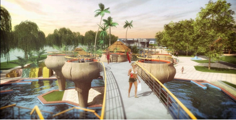 – A tahiti medence három egységre tagolódik: nagy strandmedencei rész, pihenő és vízi élményelemekkel felszerelt rész, valamint egy vízi bár kap majd itt helyet.