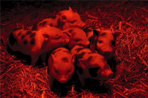 Infralámpa alatt melegszenek a hideg időben a tizenegy napos minnesotai törpemalacok a Debreceni Állat- és Növénykertben 2017. január 16-án. MTI Fotó: Czeglédi Zsolt