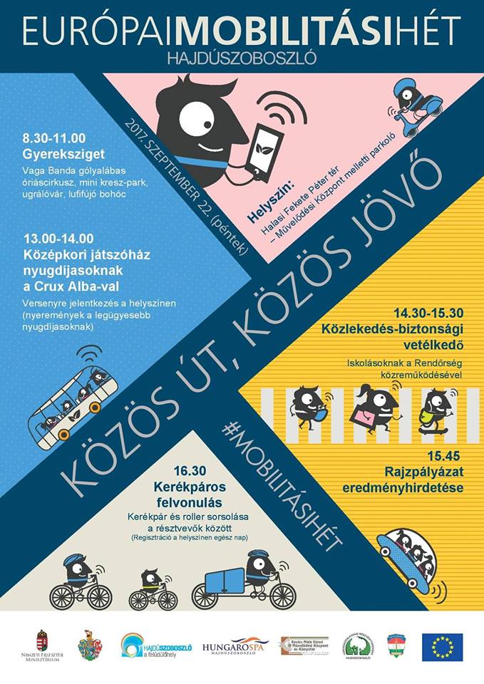 Az Európai Mobilitási Hét és Autómentes Nap alkalmából 2017. szeptember 22-én változatos programok várják az érdeklődőket Hajdúszoboszlón. Az idei év mottója: „Közös út, közös jövő”. Témája: tiszta, közösségi és intelligens mobilitás.