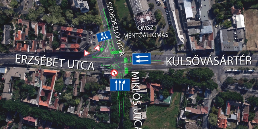 Délelőtt 7 és 12 óra között lezárják mindkét irányból. Az Erzsébet/Külsővásártér – Miklós utca és a Miklós utca –Antall József utca csomópontjában közterület-felügyelők és polgárőrök fogják segíteni a közlekedőket az eligazodásban. A délelőtt folyamán tiltva lesz az Antall József utcából a Miklós utcára történő jobbra és balra kanyarodás is. A Szív utca Miklós utcai csomópontját szintén lezárják.