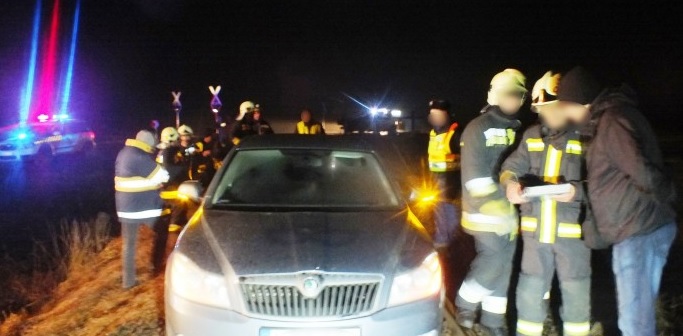 Az autó két első kereke defektet kapott, a gépjármű a vasúti sínre felfeküdve