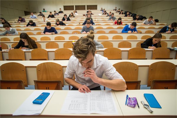 Még bő három hetük van az egyetemistáknak, hogy számot adjanak az őszi félév során megszerzett tudásukról. Hallgatók írásbeli vizsgán a Budapesti Corvinus Egyetemen (BCE) 2019. január 9-én.