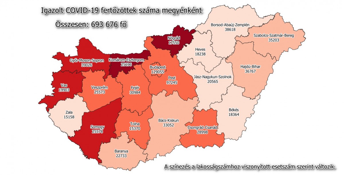 Folyamatosan zajlik az oltás, a beoltottak száma 2 536 751 fő, közülük 1 005 936 fő már a második oltását is megkapta. 1933 az új fertőzöttek száma, ezzel a járvány kezdete óta összesen 693 676 főre nőtt a beazonosított fertőzöttek száma.