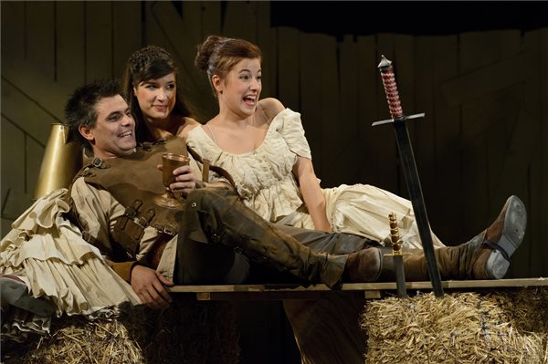 Pál Hunor (b) Raniero Di Ranieri lovag, Szanyi Sarolta (k) a fogadósné és Mészáros Ibolya (j) a szegény lány szerepében Lackfi János A dühös lovag című színdarabjának próbáján a debreceni Csokonai Nemzeti Színház Víg Kamaraszínházában 2014. november 13-án. A darabot november 17-én mutatják be Fige Attila rendezésében. MTI, Fotó: Czeglédi Zsolt