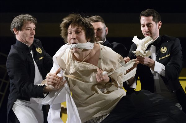 Kiss Gergely Máté (b2) Hontalan Iván szerepében Mihail Bulgakov A Mester és Margarita című misztikus drámája próbáján a debreceni Csokonai Nemzeti Színházban 2015. február 25-én. A színdarabot február 27-én mutatják be Rusznyák Gábor rendezésében. MTI, fotó: Czeglédi Zsolt