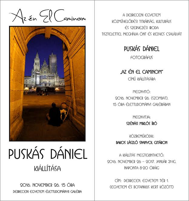 Az én El Caminóm című kiállítás a két debreceni egyetemista, Fekete Zsófia és Puskás Dániel kalandozásait mutatja be a Spanyolországban megtett közel 800 kilométeres útjuk során.