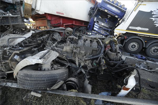 Csámpai Attila, a Pest Megyei Katasztrófavédelmi Igazgatóság szóvivője az MTI-nek azt mondta, az egyik kamion vezetőfülkéje a becsapódástól az árokba repült, vezetője a helyszínen életét vesztette. Egy másik jármű vezetője beszorult a teherautóba, őt feszítővágóval szabadították ki.