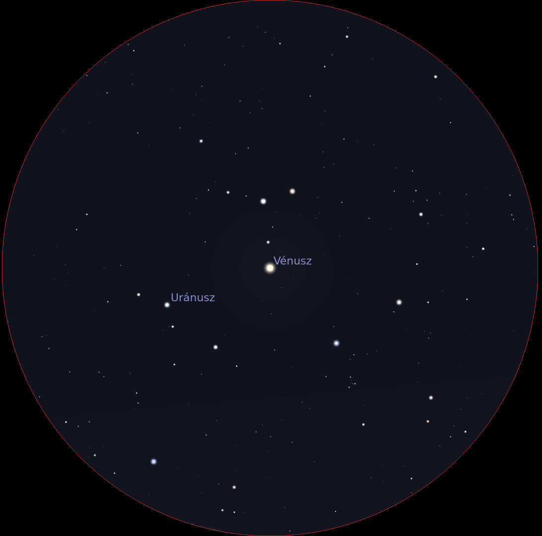 A Vénusz már negyed nyolc körül megpillantható lesz, és iránytűként segíthet megtalálni az Uránuszt. A halvány bolygót azonban csak fél kilenc körül lehet majd meglátni.