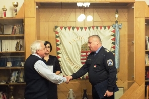 Dr. Lingvay Csaba r. ezredes, Hajdú-Bihar megye rendészeti rendőrfőkapitány-helyettese Szent György emlékplakettel köszönte meg egy állampolgár segítségét.