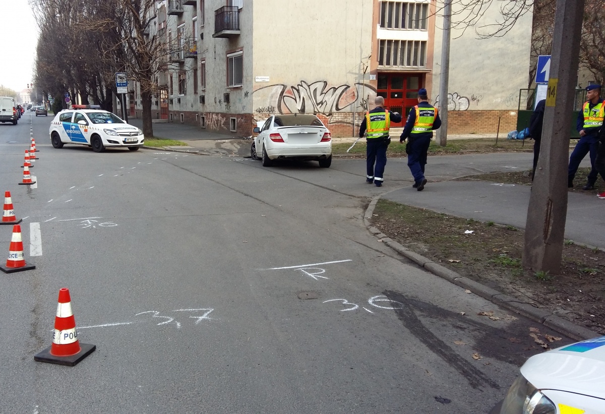Egy Mercedes típusú személygépkocsi közlekedett Debrecenben, az Egyetem sugárúton, a Honvéd utca felől a Füredi út irányába 2017. március 24-én 5 óra 20 perc körül. A sofőr az Őszirózsa közbe kanyarodott gépjárművével, eközben nekiütközött egy társasház falának. Az esetet látta egy, a közelben elhaladó jármű vezetője, aki megállt és bejelentést tett a rendőrségre.