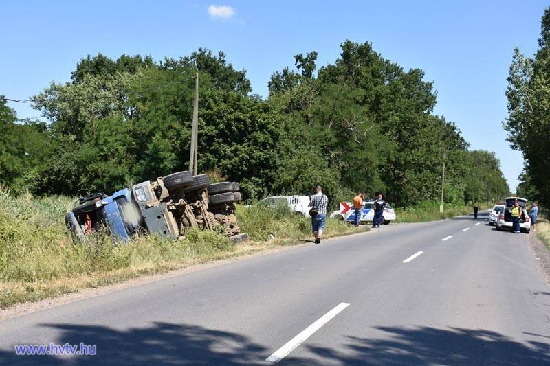 Hétfő délelőtt 11 óra körül egy kamion borult az árokba Debrecen és Hajdúszovát között. A kamion Debrecen felől érkezett és Hajdúszovát, Derecske irányába közlekedett.A Hajdúszoboszlói Városi TV Információi szerint a tehergépkocsi homokot szállított az útépítéshez, ami az árokba borult. A balesetben csak a kamion vezetője sérült, mivel nem ütközött senkivel, csupán lehajtott az útról az árokba.
