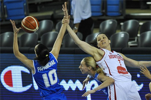 A görög válogatott 13 ponttal legyőzte a montenegrói csapatot a magyar-román közös rendezésű női kosárlabda Európa-bajnokság debreceni középdöntős csoportjának vasárnapi záró fordulójában.